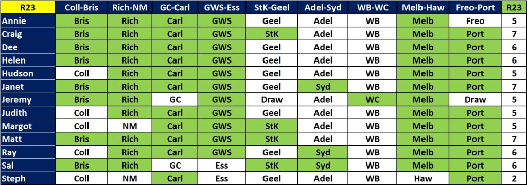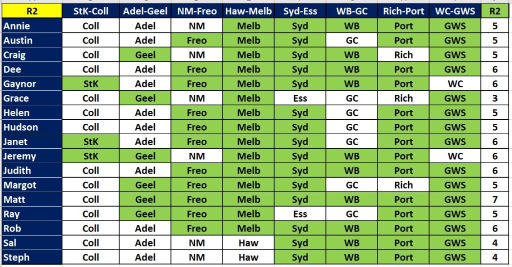 Meanwhile, Port notched up another win, although you have to feel for Freo with two last-minute losses at Adelaide Oval within a week.